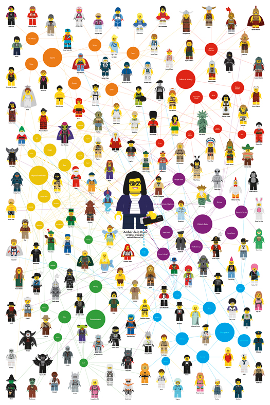 Illustrated poster highlighting my analytical skills through the classification of 144 Lego minifigures & their interrelations.