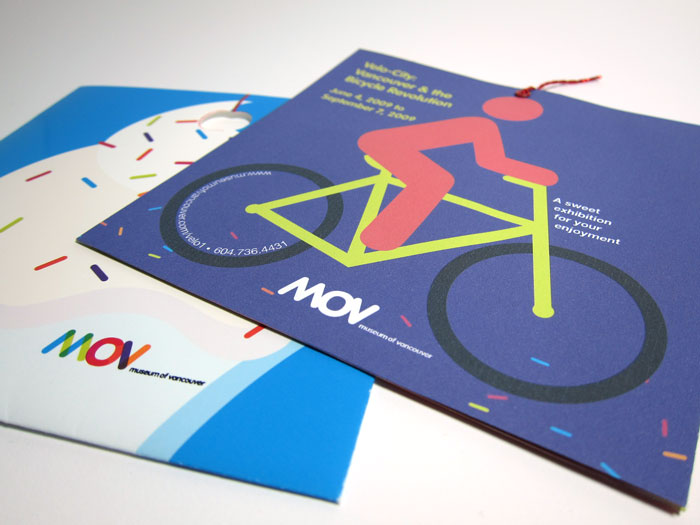 Direct mailer & rack card to promote the Velo-City bicycle exhibit at the Museum of Vancouver.