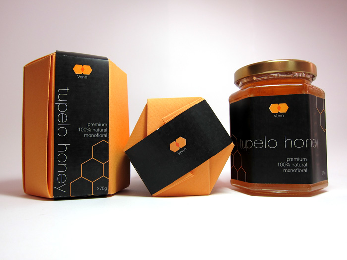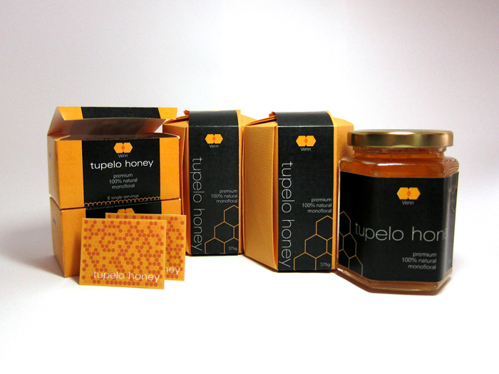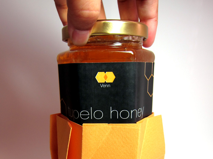 This was an open brief project for which we were to design at least two pieces of packaging. Rather than revamp an existing product, I chose to design a packaging suite for a premium line of tupelo honey for imagined company Venn.